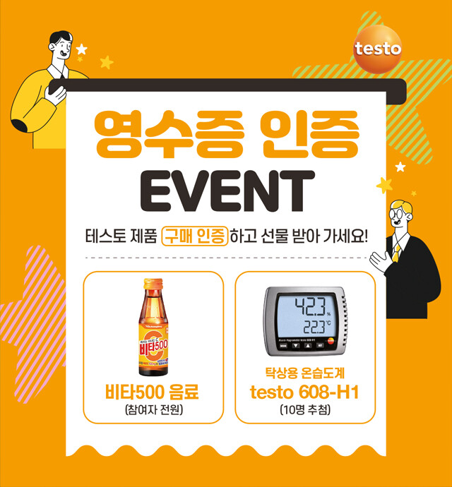 테스토코리아는 2021년 이후 테스토 제품을 구매한 고객을 대상으로 구매 영수증을 인증한 고객 전원에게 비타 500을 증정하고 참여자 중 10명을 추첨해 탁상용 온습도계 테스토 608-H1을 증정한다.