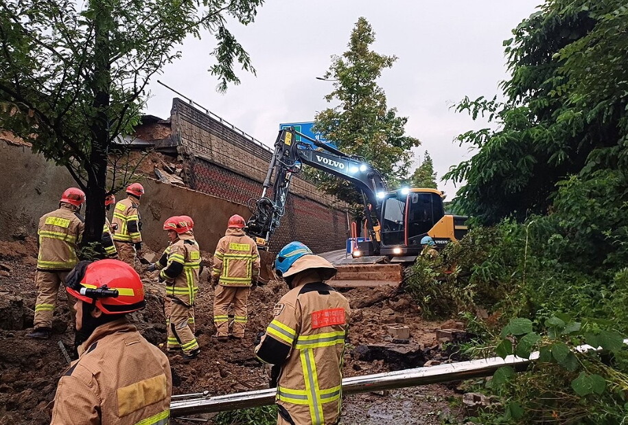 | 오산 가장교차로 고가도로 옹벽 붕괴 현장. [사진=경기도소방재난본부] |