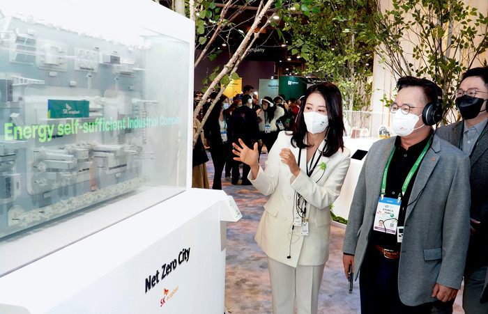 그러면서 미래 선순환 환경 도시를 가로 100cm, 세로 60cm 크기의 디오라마(축소모형)로 구현한 ‘넷제로 시티’에는 SK에코플랜트가 현재 진행 및 추진 중인 재생에너지 기반 그린수소 생산, 연료전지 발전, 폐기물 에너지화(Waste to Energy), 그린리노베이션 등 획기적인 환경·신재생에너지 해법을 소개했다.