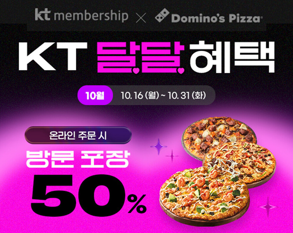 한편 이번 행사에 대한 자세한 내용은 도미노피자 홈페이지와 KT 멤버십 10월 달달 혜택 이벤트 페이지에서 확인하면 된다.