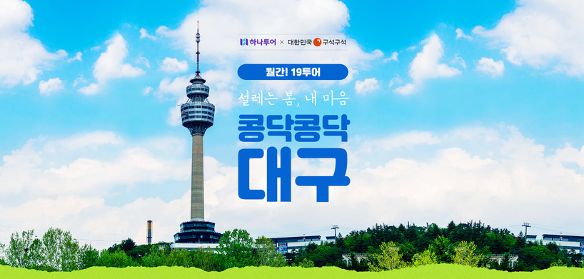 하나투어와 한국관광공사는 매월 국내 도시 한 곳을 선정해 여행콘텐츠와 상품을 소개하는 ‘월간! 19투어’를 진행한다. 이에 하나투어는 한국관광공사·대구관광재단과 함께 오는 4월18일까지 대구여행 활성화를 위한 통합 마케팅 캠페인을 진행한다.
