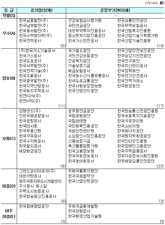 평가 대상은 32개 공기업과 55개 준정부기관이다.