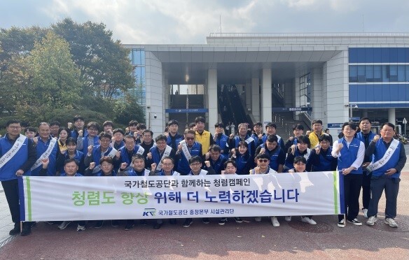 충청본부는 또 플로깅 활동과 함께 ‘청렴 기념품(물티슈)’을 협력사 및 철도 이용객에게 배부하며 청렴한 철도문화를 조성과 상생협력을 강화하는 시간을 가졌다.