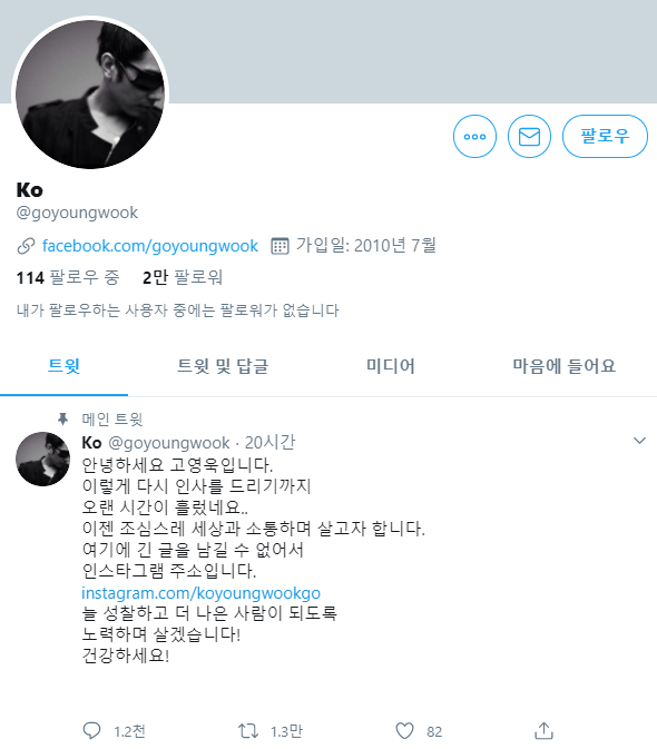 [하비엔=노이슬 기자] 가수 고영욱이 인스타그램(SNS)을 개설하며 대중과 소통을 원했다. 하지만 대중들의 반응은 싸늘했다.