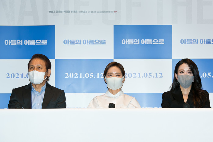 28일 오후 서울 광진구 롯데시네마 건대입구에서 영화 <아들의 이름으로> 언론 시사 및 간담회가 개최됐다. 이 자리에는 감독 이정국, 배우 안성기, 윤유선, 이세은이 함께했다.
