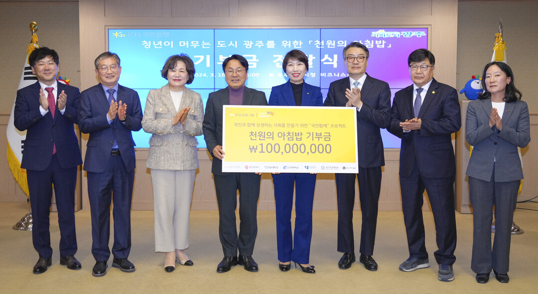 [하비엔뉴스 = 조정현 기자] KB금융그룹은 광주지역 5개 대학에 ‘천원의 아침밥’ 지원을 위해 1억원을 기부했다고 18일 밝혔다.