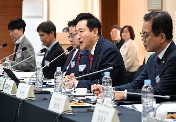 | 24일 오세훈 서울시장이 한국프레센터 외신기자클럽에서 열린 제1차 서울혁신대학지원위원회 회의에서 인사말을 하고 있다. [사진=서울시] |