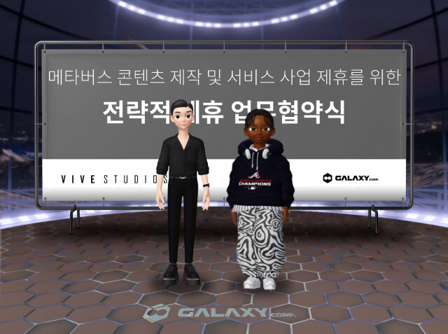 이번 업무협약식은 비브스튜디오스와 갤럭시코퍼레이션 대표의 아바타 부캐와 함께 메타버스 공간에서 진행됐다.