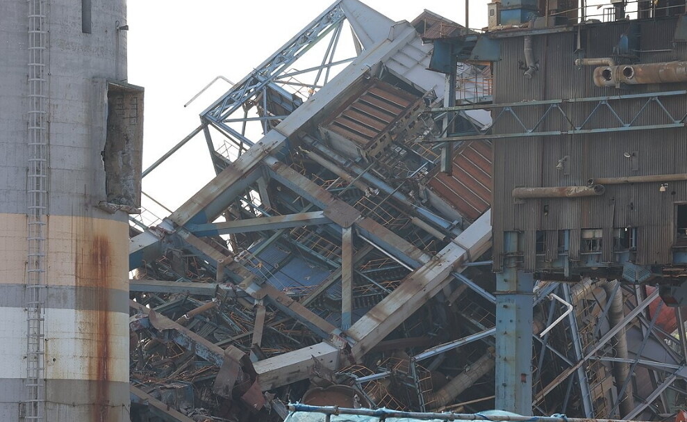 | 울산화력발전소 보일러 타워 붕괴 현장. [사진=연합뉴스] |