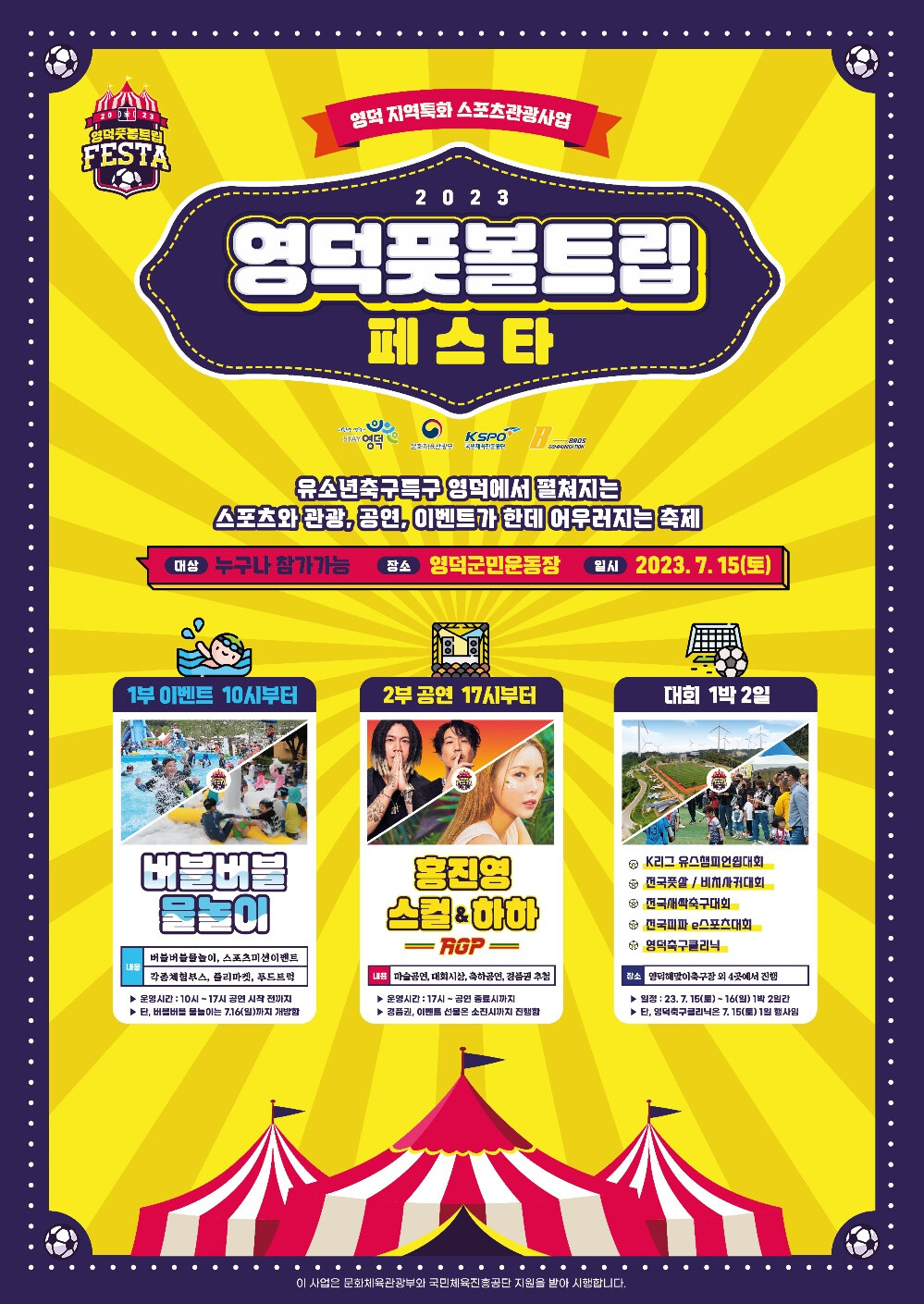 다양한 축구대회와 물놀이, 문화공연이 어우러진 ‘2023 영덕풋볼트립 페스타’는 영덕군이 주최하고 브로스커뮤니케이션이 주관하는 지역특화 축제다.