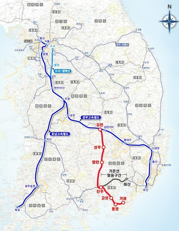 이 사업이 완료되면 서울·수서에서 거제·마산까지 환승 없이 직결 운행이 가능해 서울-진주간 이동은 고속열차 기준 당초 3시간27분에서 2시간9분으로 1시간18분이 단축된다. 또 거제까지는 2시간34분 만에 도착할 수 있다.