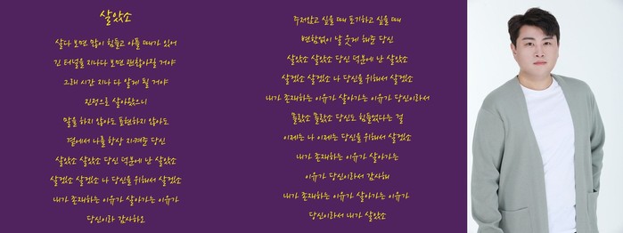 9일 김호중 공식 팬카페를 통해 스페셜 트랙인 ‘살았소’의 가사가 공개됐다.