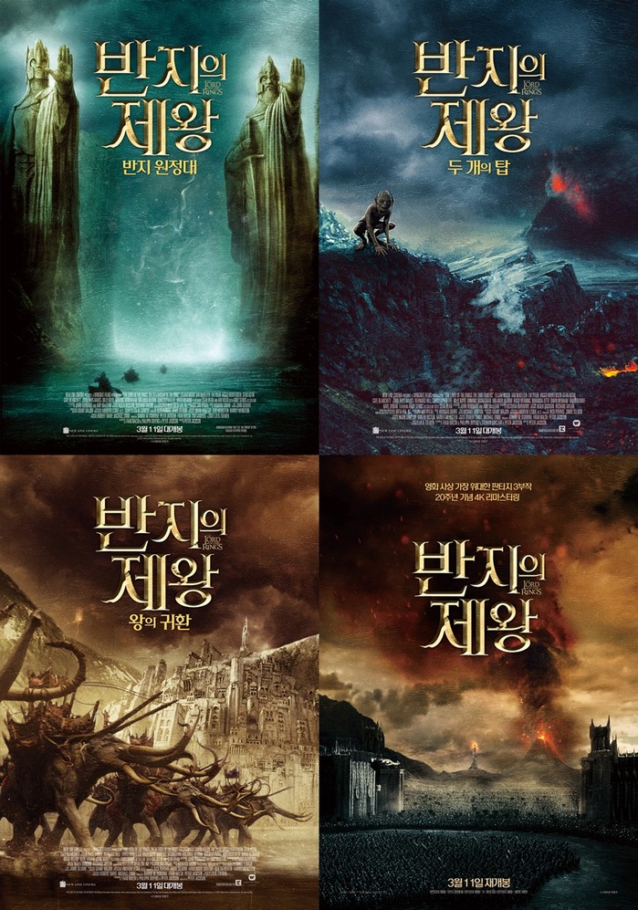 ‘반지의 제왕’ 재개봉은 1편 ‘반지의 제왕: 반지 원정대’가 3월 11일, 2편 ‘반지의 제왕: 두 개의 탑’, 3편 ‘반지의 제왕: 왕의 귀환’이 3월 18일 개봉한다. 2D 4K, IMAX 4K 포맷으로 상영되며 아이맥스 상영은 최초이다. 또한 3월 20일, 21일 전국 CGV에서는 3부작을 연속 상영한다.