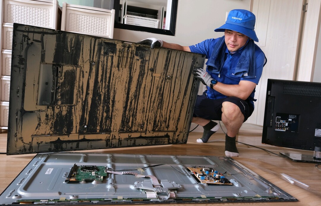 삼성전자서비스는 18일부터 수해 지역에 ‘특별서비스팀’을 파견해 침수된 가전제품과 휴대전화를 무상으로 점검 및 세척하는 서비스를 진행하고 있다. 이동형 서비스센터 설치는 물론, 엔지니어들이 피해 가정을 직접 찾아가는 순회 점검도 병행한다.