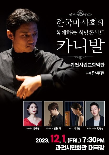 한국마사회가 후원하고 과천문화재단과 과천시립예술단이 주관하는 이번 콘서트는 안두현 과천시립교향악단 상임지휘자를 비롯해 동양인 최초 벨기에 퀸 엘리자베스 콩쿠르 우승을 차지한 소프라노 홍혜란, 한국인 최초 링컨센터 리사이틀을 가진 클래식색소포니스트 브랜든 최, 오르가니스트 이예원이 참여한다.