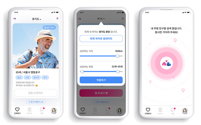 이 가운데 ‘단짝찾기’ 서비스는 위치 기반 매칭인 만큼 빠른 관계 형성이 가능하고, 희망 연령을 선택할 수 있게 해 매칭률을 높인 것이 특징이다.