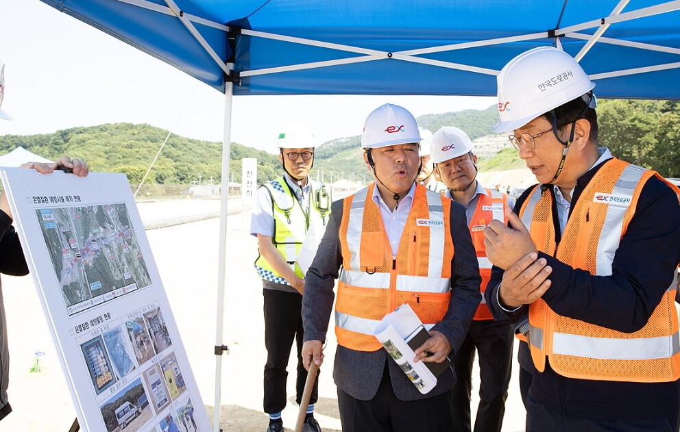 | 박상우 국토교통부 장관이 11일 충남 아산시 인주-염치 고속도로 건설 현장에서 폭염 및 풍수해 대비 현장점검 하고 있다. [사진=국토교통부] |