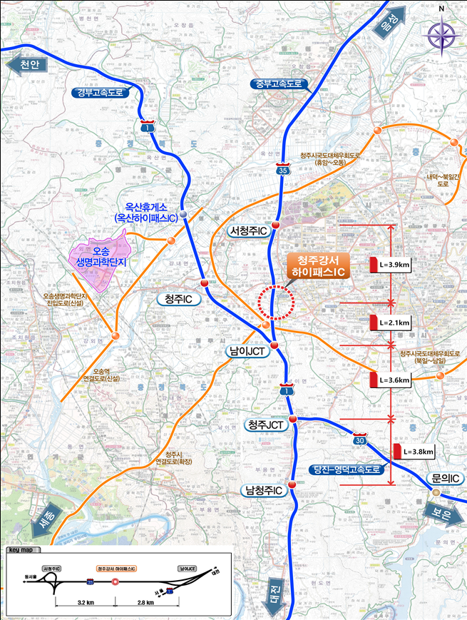 | 청주강서 하이패스 나들목(양방향) 위치도. [사진=한국도로공사] |