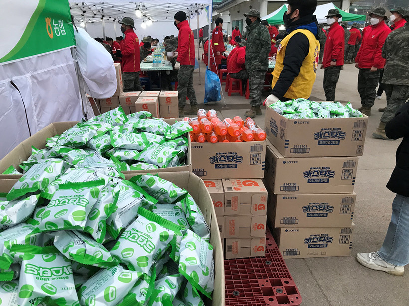 [하비엔=윤대헌 기자] 롯데제과가 강원·경북 산불 피해지역 이재민과 피해복구 구호 인력을 돕기 위해 물품 기부에 동참했다.