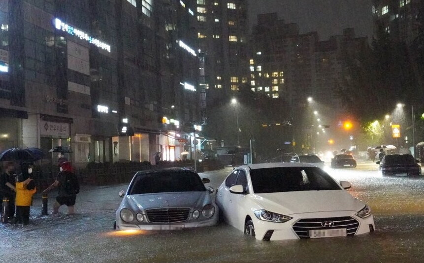 | 폭우에 침수된 차량. [사진=연합뉴스] |