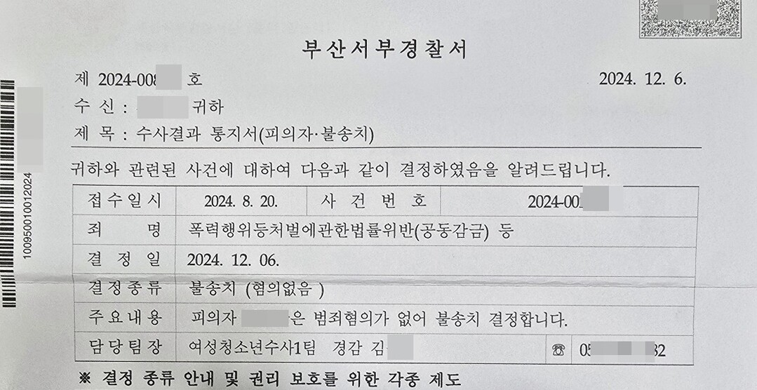 | 부산서부경찰서 수사 결과 통지서. |