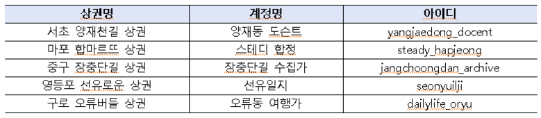 상권별 브랜딩 콘셉트는 ▲살롱 인 양재(양재천길) ▲크리에이터 타운(합마르뜨) ▲히스토리컬 시티(장춘단길) ▲선, 여유로운(선유로운) ▲정선스러운 일상(오류버들)이다. 올해는 브랜딩 콘셉트를 상권에 내재화하는 다양한 사업을 추진하고, 상인·주민 등 상권 주체와의 긴밀한 협의를 통해 상권의 BI 요소를 만든다는 계획이다.