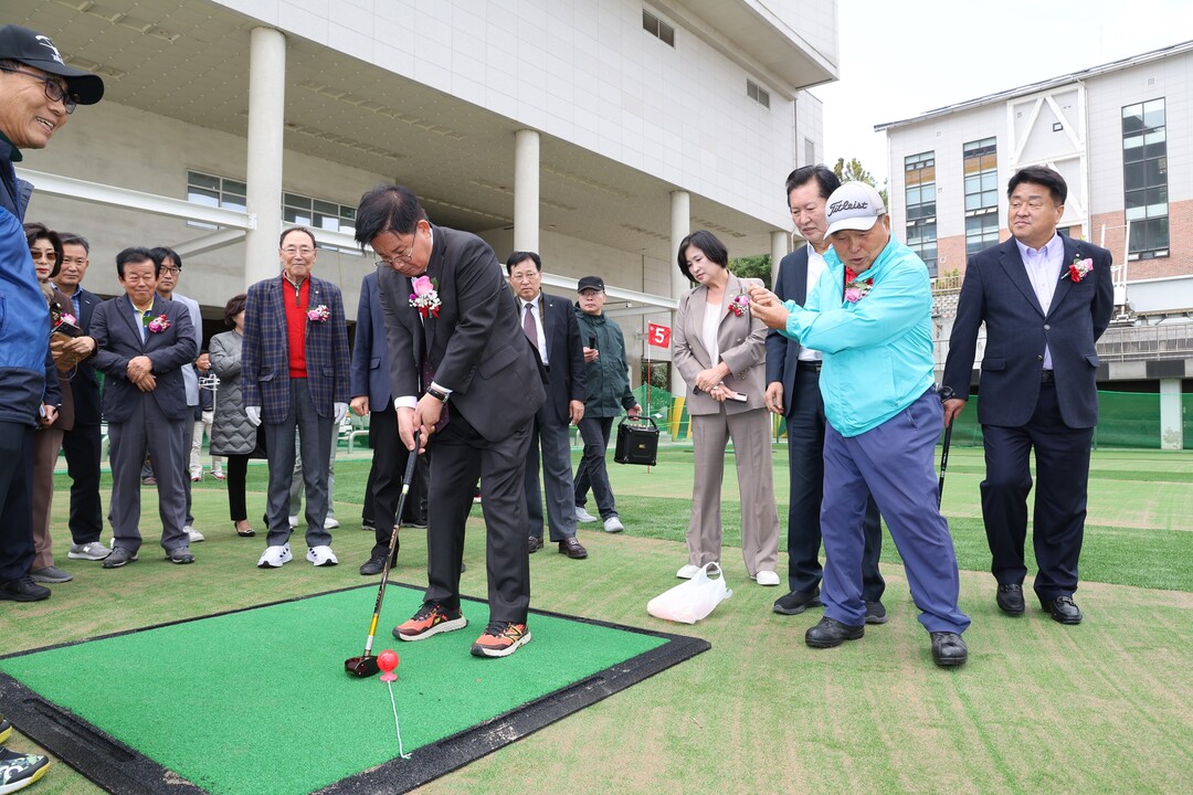 | 23일 열린 망원유수지 파크골프장 개장식에서 파크골프를 하는 박강수 마포구청장 [사진=마포구] |