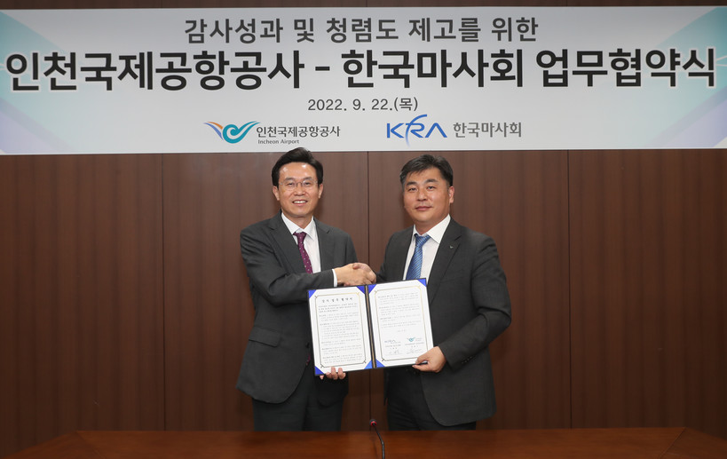 [하비엔=윤대헌 기자] 한국마사회는 지난 22일 인천국제공항공사와 감사 업무 전반의 협력교류 및 상호지원을 위한 협약을 체결했다고 밝혔다.