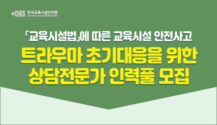 | ▲ 교육시설 안전사고 트라우마 초기 대응을 위한 상담전문가 인력풀 모집 |