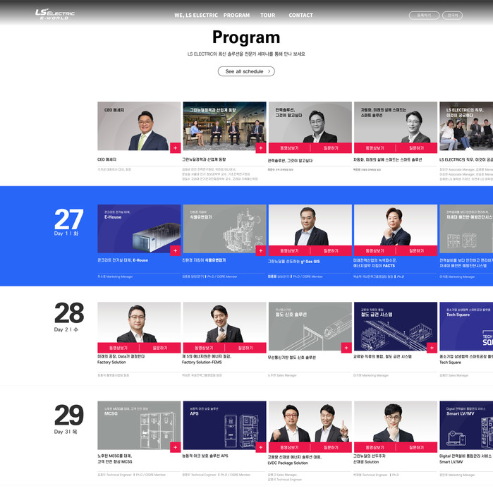 | ▲ LS일렉트릭이 국내외 고객과의 디지털 온라인 소통을 위해 10월 27일부터 29일까지 3일간 가상 전시회 ‘Virtual day 2020’을 업계 최초로 개최했다. 사진은 ‘Virtual day 2020’ 프로그램 |