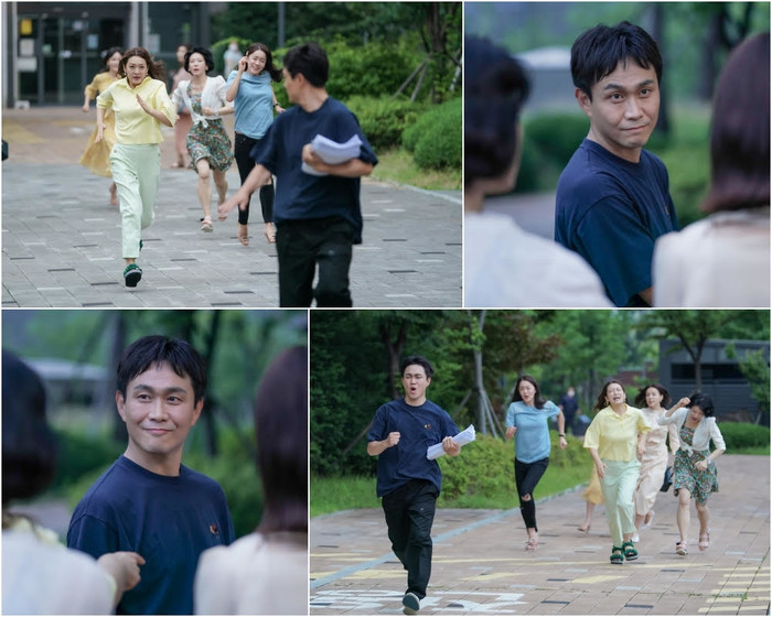그런가 하면 ‘대낮 추격전’ 장면은 지난 6월 경기도 남양주시 한 아파트 단지 내에서 진행됐다. 초여름 한낮의 후덥지근한 날씨에도 불구하고 쫓고 쫓기는 추격전을 펼치는 고난도 장면이었지만, 배우들은 리허설부터 본 촬영까지 지친 기색 없이 촬영을 이어나가 모두의 귀감을 샀다. 오정세와 ‘맘블리’ 박선영, 황우슬혜, 정수영, 송아경, 이나은은 뛰어야 하는 구간 및 동선을 세심하게 파악한 후 꼼꼼하게 사전 준비를 마쳤고, 활력 넘치는 움직임과 리얼한 표정 열연을 더해 또 하나의 유쾌하고 코믹한 명장면을 완성했다.