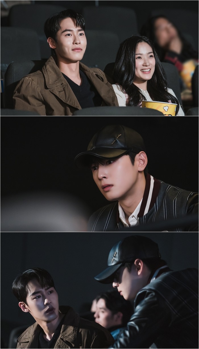 이와 관련 공개된 스틸에는 영화관 데이트를 즐기는 김혜윤, 이재욱의 모습이 담겨있어 눈길을 끈다. 얼굴 가득 미소를 머금은 두 사람의 달달한 투샷이 보는 이들까지 설레게 하며, 이들이 뿜어낼 커플 케미스트리를 기대하게 한다. 그런 가운데 김혜윤과 이재욱을 바라보며 동공지진을 일으키는 차은우의 모습이 포착돼 관심을 높인다. 그리고 이내 두 사람에게 다가간 차은우와 이에 황당감을 감추지 못하는 이재욱의 표정이 포착돼 무슨 상황인지, 이들의 관계에 궁금증이 고조된다.