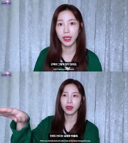 전효성은 인바디를 묻는 팬의 질문에 "최근에 잰 적이 없어서..."라며 "근데 항상 잴 때마다 근육이 그렇게 많지 않다. 근육을 늘리고 지방을 줄이라고 나온다. 인바디보다는 실제로 봤을 때 눈바디가 중요한 것 같다"고 답했다.