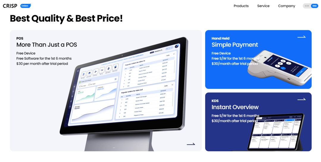 먼키USA에서는 먼키가 미국 현지 실정에 맞게 자체 개발한 포스와 Hand Held, KDS 등 매장 운영 통합솔루션인 CRISP Orders를 판매하게 된다.