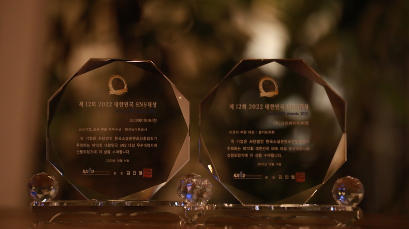 | ▲ 크리에티비젼이 ‘2022 대한민국 SNS 대상’에서 우수대행사상을 수상했다. |