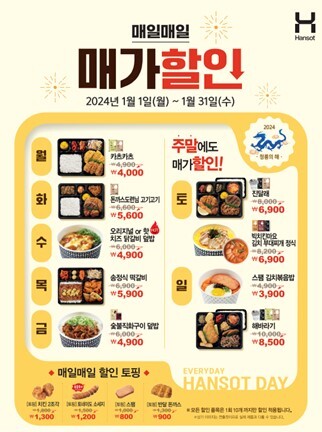 | 한솥도시락이 요일별 할인 혜택을 제공하는 ‘매가할인’ 행사를 진행한다. [사진=한솥] |