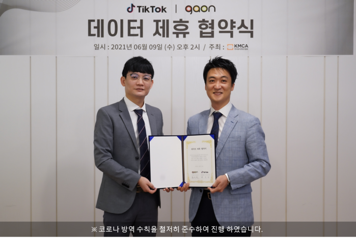 한편 한국음악콘텐츠협회에서 개최된 ‘가온차트-틱톡 데이터 제휴 협약식’에는 한국음악콘텐츠협회 최광호 사무총장, 틱톡 배정현 사업개발 이사가 참석해 K-POP의 세계적 위상과 발전 방안에 대해 열띤 토의를 펼쳤다.