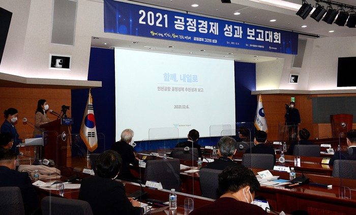 [하비엔=문기환 기자] 인천국제공항공사는 지난 6일 정부서울청사 국제회의장에서 정부 5개 부처(법무부·고용부·중기부·공정위·금융위) 주최로 열린 '2021 공정경제 성과 보고대회'에서 모범거래모델 선도기업으로 선정돼 공사의 공정문화 추진성과를 국토교통부 산하기관을 대표해 발표했다고 밝혔다.