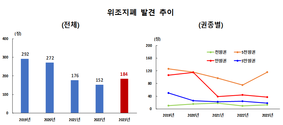 이는 코로나19 이후 대면 상거래가 정상화되고, 과거 대량 유통된 위조지폐의 발견이 늘어난 탓이다.