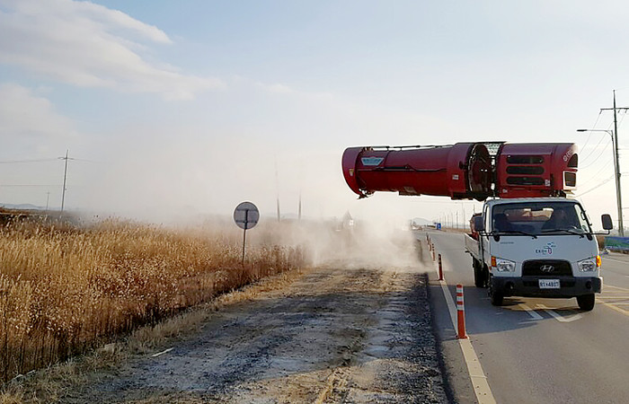 또 방역차량 8대, 살수차 1대, 드론 2대를 동원해 복하천, 청미천, 양화천 등의 철새도래지를 중심으로 집중 방역소독을 벌이고 있다.