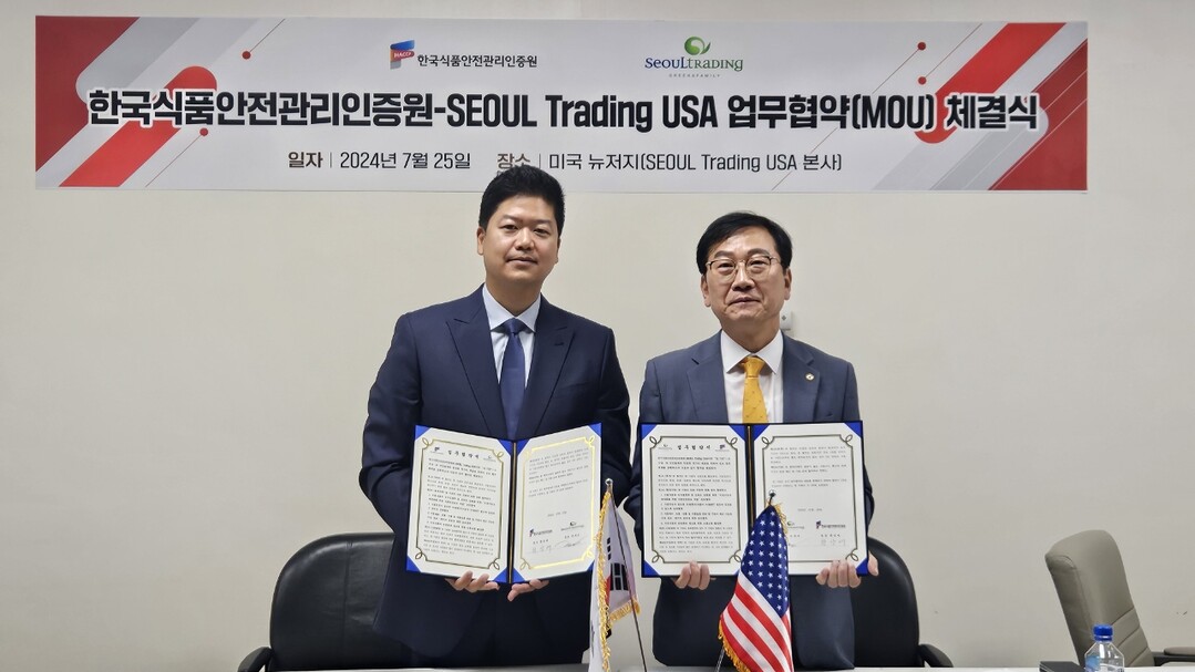[하비엔뉴스 = 홍세기 기자] 한국식품안전관리인증원과 서울트레이딩USA(SEOUL Trading USA)이 지난 25일 미국 뉴저지주 서울트레이딩USA 본사에서 식품안전이 담보된 국내 식품의 해외 진출 확대를 위한 업무협약(MOU)을 체결했다.