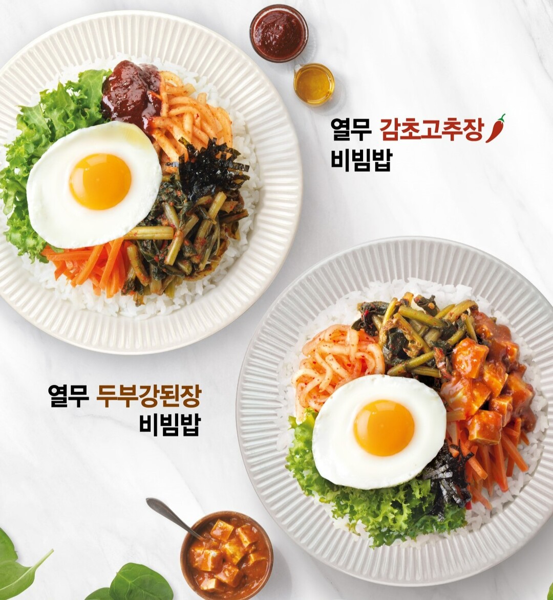 신제품 2종은 매콤달콤한 맛이 일품인 ‘열무 감초고추장 비빔밥’과 구수한 감칠맛을 자랑하는 ‘열무 두부강된장 비빔밥’이다.
