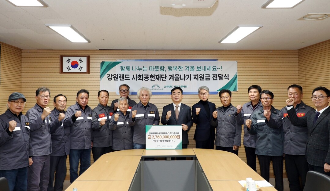 | 26일 강원랜드사회공헌재단이 ‘2024년 겨울나기지원사업 지원금 전달식’을 통해 27억원을 전달했다. [사진=강원랜드] |