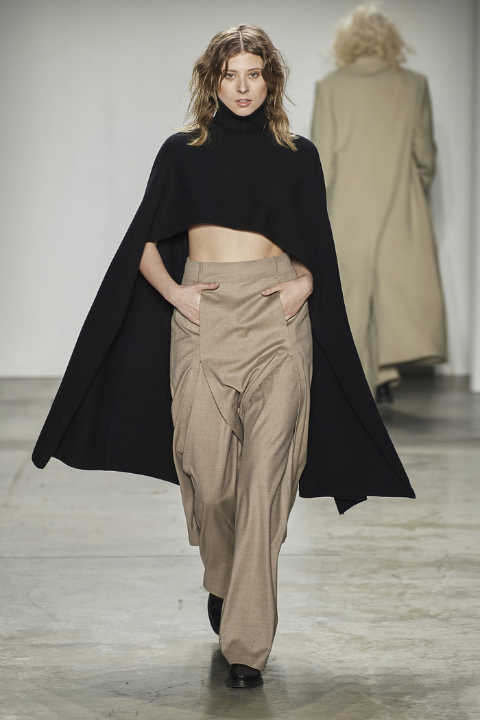 전혀 다른 질감의 소재들 또는 유연한 실루엣과 구조적인 실루엣들이 만나 조화를 이루어 동적인 형태와 정적인 형태가 “공존”하면서 “대립”하여 만들어내는 흐름에 집중했다는 것이 프롬웨얼의 특징이다.