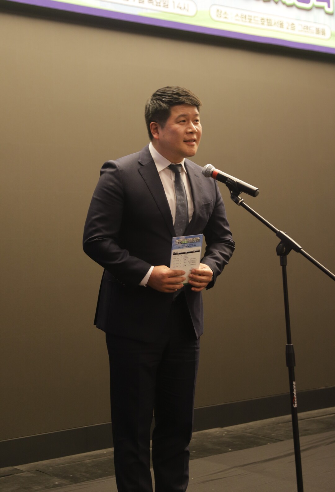 | 7일 오후 2시 서울 상암 스탠포드호텔에서 열린 ‘제1회 2024 대한민국 ESG 청년웹툰 공모전’ 시상식에서 김종열 메가경제신문 대표이사가 단상에 올라 시상을 준비하고 있다. |