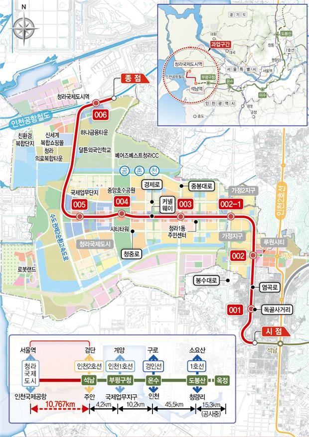 청라연장선은 기본계획 승인(’19.7) 이후 사업구간내 가정2지구 공공주택지구의 지정변경 및 지구계획이 승인 고시됨에 따라 이를 반영해 기본계획을 변경하고 가칭 가정역(002-1)을 추가로 신설하게 됐다.