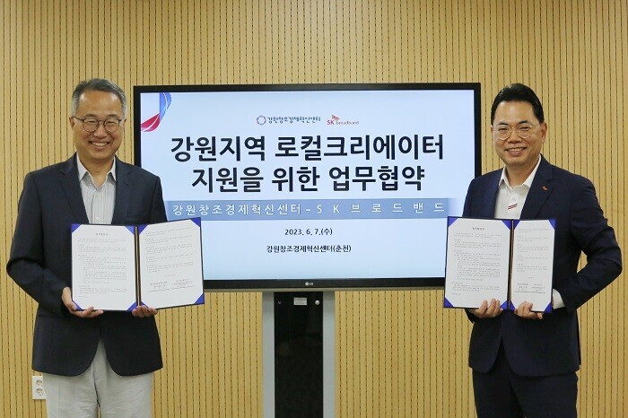 SK브로드밴드는 강원도 춘천시 강원창조경제혁신센터 본원에서 강원 지역 로컬 크리에이터 지원을 위한 업무 협약을 체결했다고 11일 밝혔다.