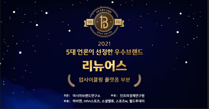 [하비엔=노유정 기자] 업사이클링 브랜드 리뉴어스는 국내 5대 언론이 참여한 ‘대한민국 브랜드 대상’에서 2021 업사이클링 부문 우수 브랜드에 선정됐다고 9일 밝혔다.
