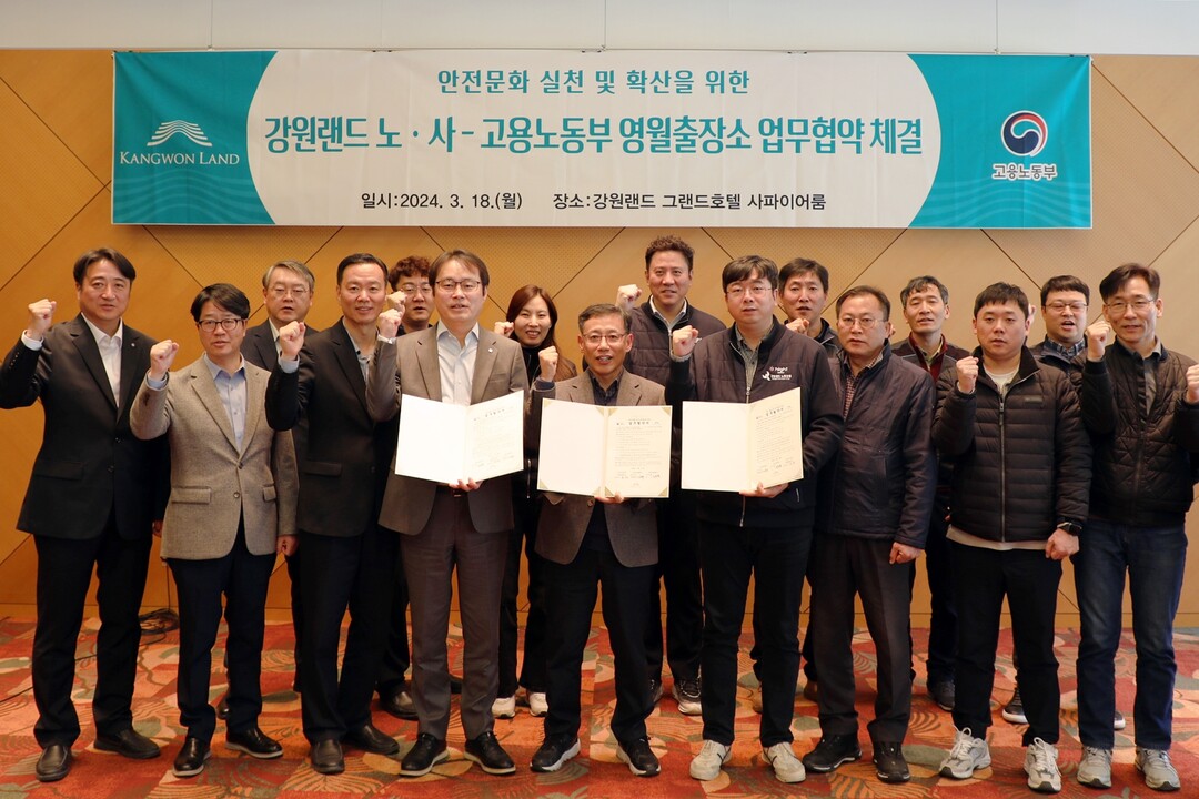 [하비엔뉴스 = 윤대헌 기자] 강원랜드는 18일 하이원 그랜드호텔에서 고용노동부 영월출장소와 ‘안전문화 확산과 안전의식 고취’를 위한 업무협약을 체결했다고 밝혔다.