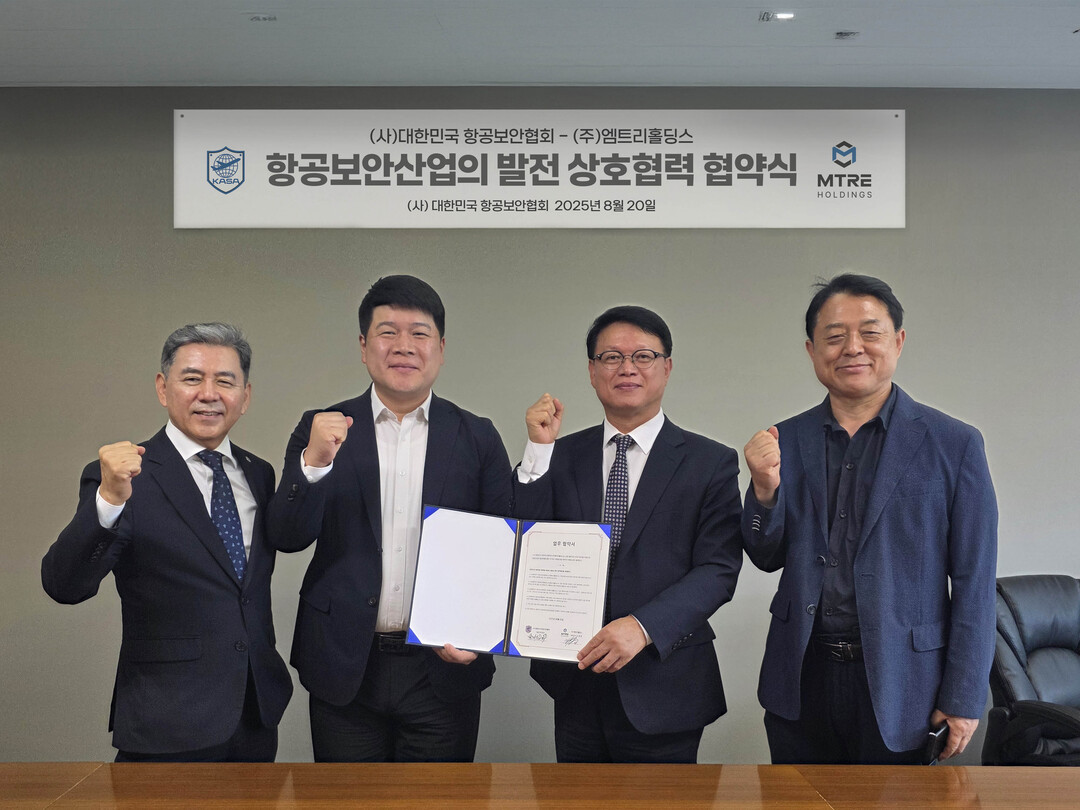 [하비엔뉴스=정동환 기자] 사단법인 대한민국 항공보안협회(회장 박재완)와 ㈜엠트리홀딩스(대표이사 김종열)가 업무협약을 체결하며 항공보안산업 활성화를 위한 협력과 동반 성장의 길로 들어섰다.